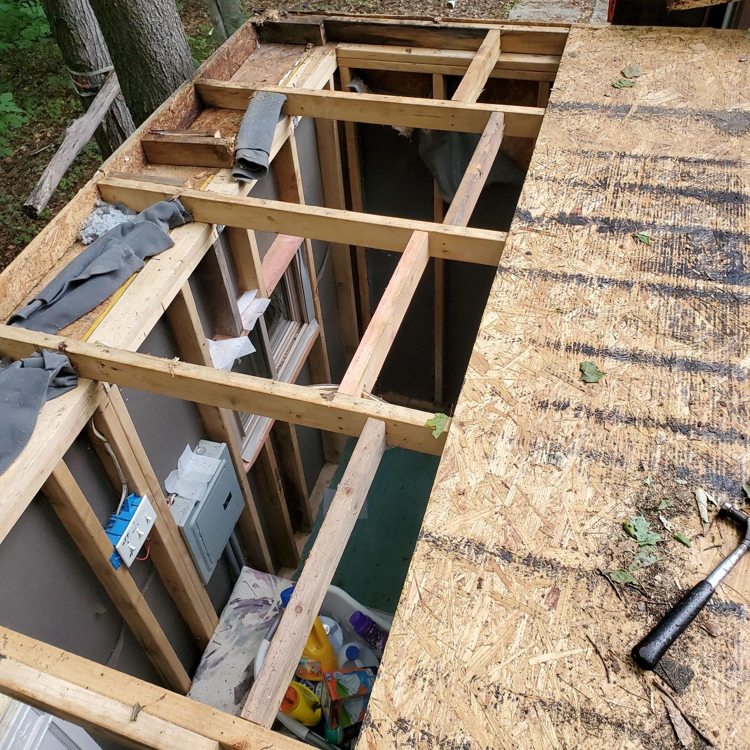 Before I could start to rebuild the roof I had to rip out all of the rotten and moldy wood. This meant tearing out a number of interior and exterior walls.