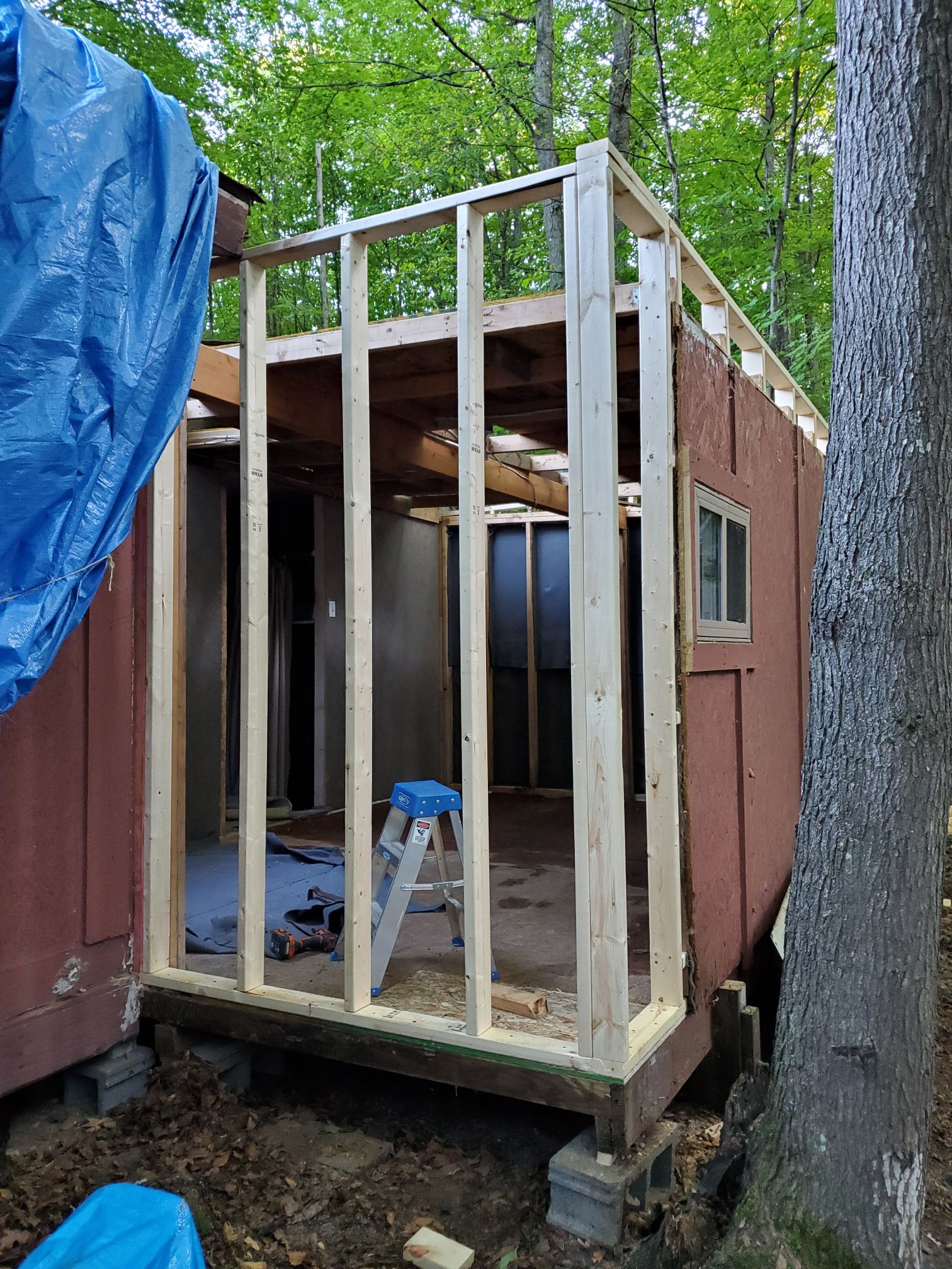 After the interior and exterior walls were replaced, it was time to start rebuilding the roof. The flat roof had a slight slope to it, so I had to level out the walls in that room.
